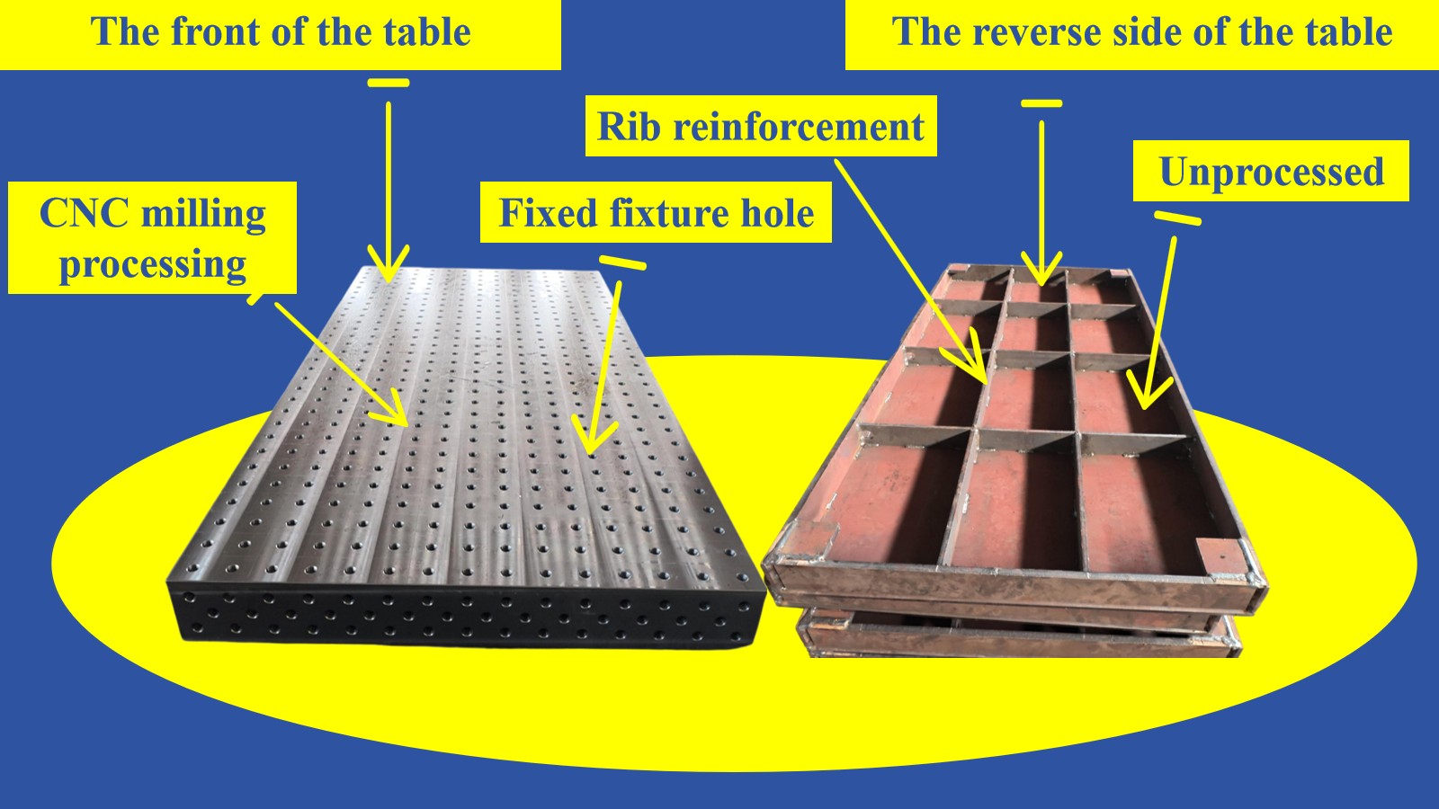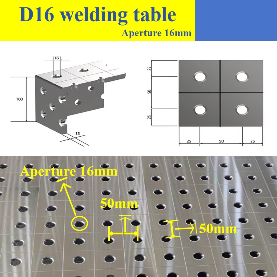 बहु-कार्यात्मक अनुकूलता: टेबलटॉपमध्ये मॅन्युअल आर्क वेल्डिंग, आर्गॉन आर्क वेल्डिंग आणि गॅस शील्ड वेल्डिंग यांसारख्या विविध प्रक्रियांशी सुसंगत, विविध टूलिंग फिक्स्चरच्या द्रुत निराकरणासाठी प्री-ड्रिल्ड पोझिशनिंग होल आणि फिक्स्चर माउंटिंग पोझिशन्स आहेत.