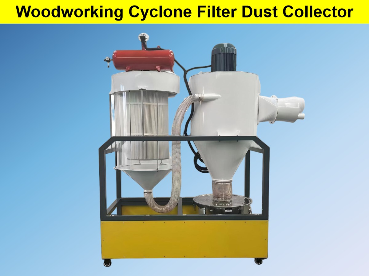 चक्रीवादळ फिल्टर-प्रकार लाकूडकाम करणारे धूळ संग्राहक हे चक्रीवादळ पृथक्करण आणि फिल्टर कार्ट्रिज फिल्टरेशनचे संयोजन आहेत. ते उच्च-सांद्रता असलेल्या खडबडीत धूळ हाताळण्यासाठी चक्रीवादळ धूळ संग्राहकांचे फायदे एकत्र करतात आणि बारीक धूळ फिल्टर करण्यासाठी फिल्टर कारट्रिज डस्ट कलेक्टर्सच्या उच्च-सुस्पष्टता वैशिष्ट्यांसह. विशेषत: लाकूडकाम वर्कशॉप्समध्ये भूसा आणि लाकूड पावडरच्या विस्तृत कण आकार वितरणासाठी डिझाइन केलेले, त्यांची धूळ काढण्याची कार्यक्षमता सिंगल-युनिट उपकरणांपेक्षा खूप जास्त आहे.